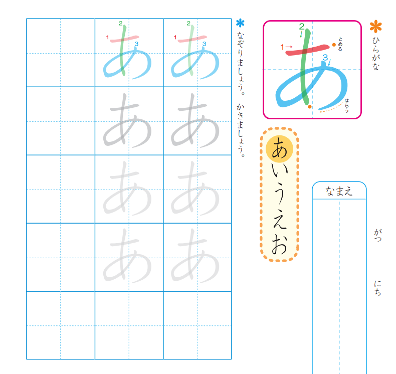 例えば、マスが縦に5つ並んでいてるひらがなの「あ」を練習するプリントをイメージしてみてください。